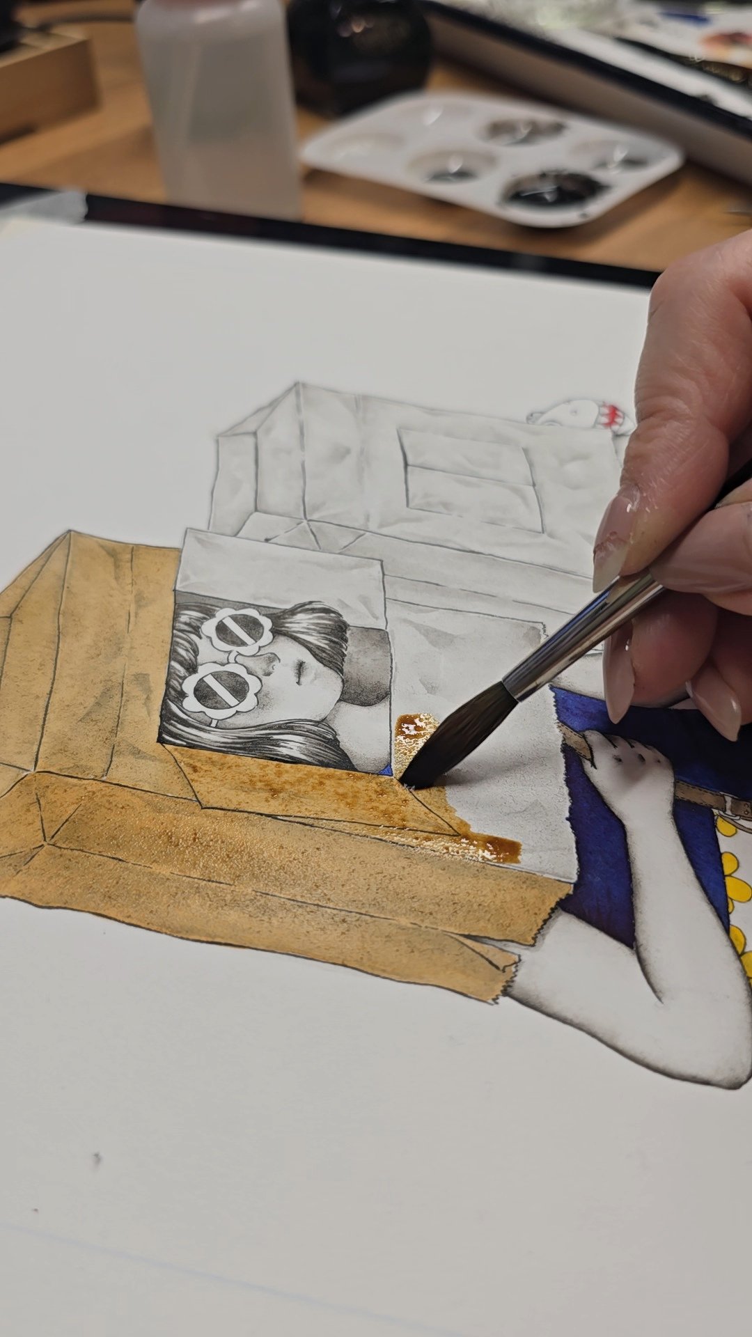 Materials : Carbon Ink, Liquid Watercolor, Gauche